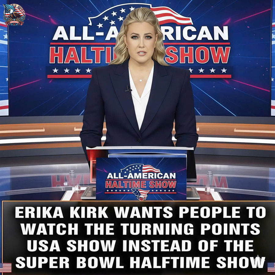 Twenty-five minutes can feel like an eternity on the internet. In that short window, a single line attributed to Erika Kirk—urging people to “turn off the Super Bowl”—has cascaded across platforms, igniting a reaction that feels less like a trend and more like a rupture. Feeds froze. Comment sections flooded. Viewers who expected the familiar rhythm of game-day hype suddenly found themselves pulled into a debate about attention, meaning, and what America’s biggest night is really for.