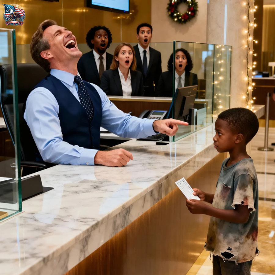 The bank manager, Tristan Vale, stopped mid-gesture, scrutinizing the boy like a rare insect trapped under glass. Then laughter erupted, a low, cruel sound that bounced off the marble walls. “Check your account?” he said, tone dripping with mockery. “This isn’t some charity. Who even let you in here?”