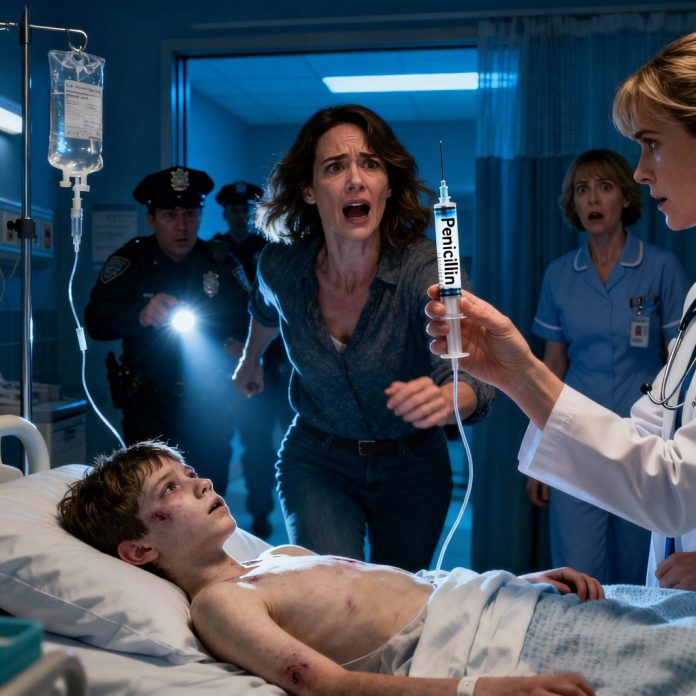 Inside, Dr. Olivia Grant—Noah’s attending physician—was standing beside the IV line, syringe in hand. The label read “Penicillin.” Grace’s throat tightened instantly. Noah was deathly allergic to penicillin—a fact known to everyone who had treated him.