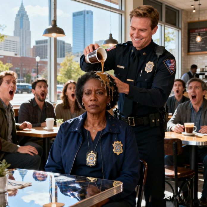 As Angela reached for her cup, a uniformed police officer behind her deliberately bumped into her. Hot coffee spilled over the counter, dripping onto her hand and staining her sleeve.