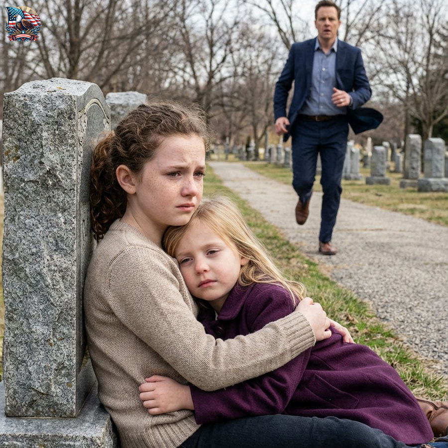 Near the grave that bore his wife’s name, on damp ground darkened by the approaching evening, his daughter lay asleep, wrapped in a worn blanket that did not belong in a place like this, her small body curled against someone else’s chest. That someone was a girl Jonathan had never seen before, thin, pale, and no older than eleven, holding his child with a protectiveness that looked instinctive rather than practiced.
