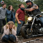The Three Teenagers Thought It Was Funny to Mock the Blind Girl and Toss Her Cane Into the Mud While She Cried Helplessly in the Park, Not Knowing That a Towering, Scarred Biker Would Suddenly Appear on a Roaring Harley, Take Control, Punish Them, and Then Reveal a Shocking Secret About Her Survival That Left Everyone Frozen and Questioning Everything They Thought They Knew