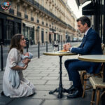 She knelt beside his table on the sidewalk, cradling her baby. “Please, I don’t want your money—just a moment of your time.”