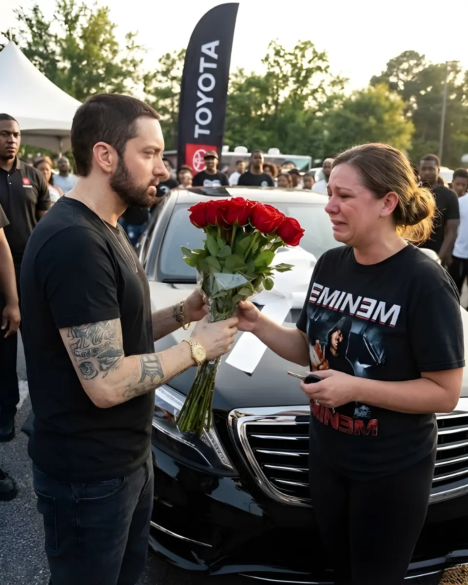 The symbolism of the gift did not go unnoticed. A car represents movement, freedom, and new beginnings—ideas deeply woven into Eminem’s own story. From Detroit streets to world stages, his journey has always been about forward motion against overwhelming odds. By offering that symbol to a fan, he seemed to pass along a message as much as a vehicle: keep going, no matter where you started or what you’ve faced.