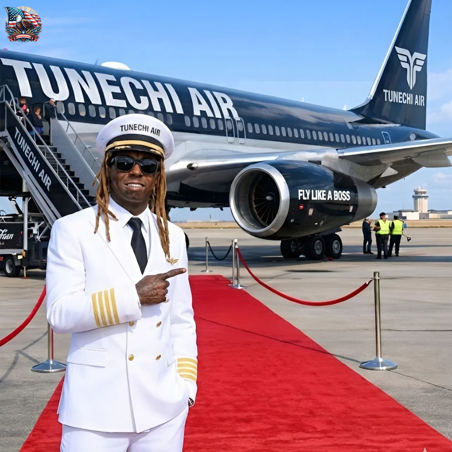 The horizon of American aviation shifted today as Lil Wayne, the legendary music icon and visionary entrepreneur, officially launched his private airline, TUNECHI AIR. In a spectacle that combined the glamour of the entertainment world with the prestige of corporate achievement, the airline’s flagship Boeing 737 made its inaugural landing at John F. Kennedy International Airport in New York. As the jet taxied through the gates, it signaled more than just a new flight path—it marked the beginning of a daring new era where the culture of hip-hop meets the high-stakes world of commercial travel.