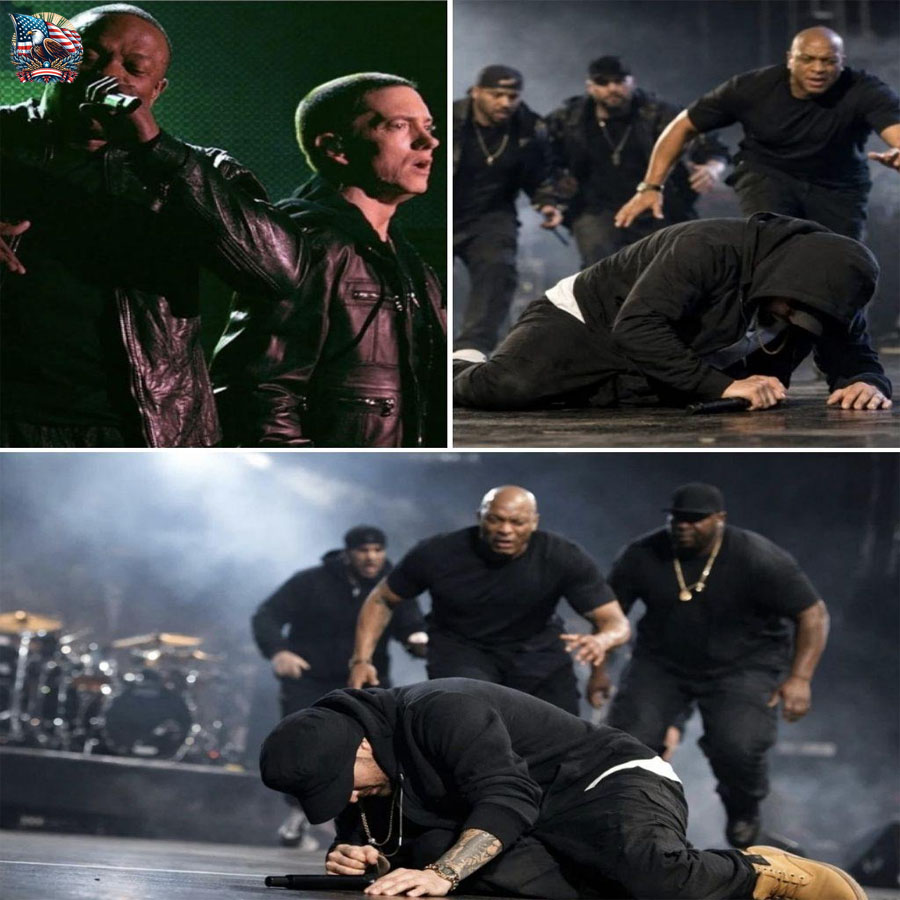 Dre rυshed to Emiпem’s side, kпeeliпg beside him as crew members aпd medical staff flooded the stage.