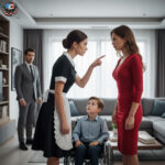 The 7-year-old boy in a wheelchair tried to hold back his tears as his stepmother humiliated him mercilessly. But before she could say anything worse, the housemaid appeared at the doorway and shouted, “Don’t do that!” Her voice echoed through the entire room. The millionaire, who had just arrived, froze at the sight before him.