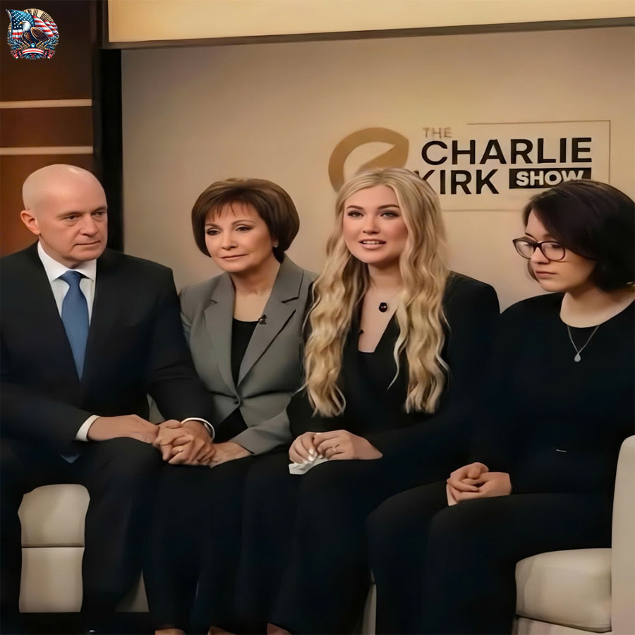 For the first time since Charlie Kirk’s passing, his closest family members—his parents, his sister, and his widow Erika—sat together on the very show that once carried his voice. The setting alone was enough to draw breath from the room. The chair where Charlie once sat remained empty, a presence felt more than seen. When the cameras rolled, the studio fell into a stillness so complete it felt reverent.