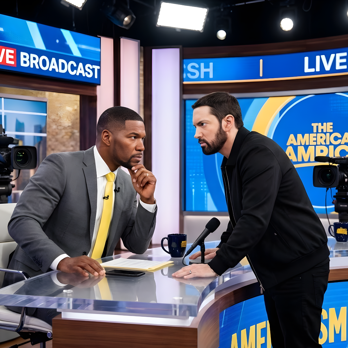 That was the line Michael Strahan let slip live on the broadcast set, as the panel laughed while discussing Eminem making a rare national TV appearance after deliberately staying away from media spotlights outside his music and touring life.