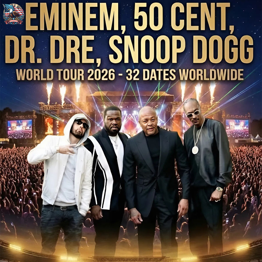 As anticipation continues to build, one thing is clear: the Eminem, Snoop Dogg, Dr. Dre, and 50 Cent 2026 World Tour is poised to become one of the most talked-about live music events of the decade. With unmatched star power, global reach, and a legacy few can rival, this tour is set to leave a permanent mark on hip-hop history.