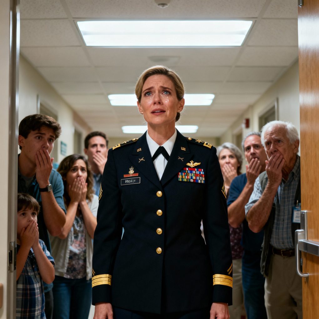 The hallway fell silent. Every eye turned to her uniform—the stars on her shoulders, the nameplate, the ribbon bar heavy with service honors. Slowly, the crowd parted. She walked past them without another word, her boots clicking softly on the linoleum floor.
