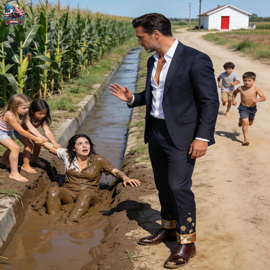 She stepped back, slipped on the edge of an old irrigation ditch, and fell hard into a muddy puddle. Water splashed everywhere, soaking her dress, dragging her braid into the muck. The envelope lay half-buried beside her hand like the earth was spitting out a secret.