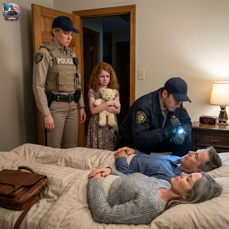 In the bedroom, Amelia’s parents lay side by side on the bed, unmoving. No signs of struggle. No visible injuries. Just stillness — the kind that made even seasoned officers feel uneasy.
