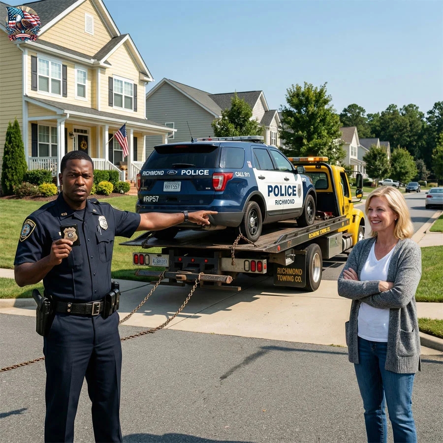 So what happens when an HOA busybody has a marked squad car towed like it’s an old pickup—and doesn’t realize she may have just committed felony grand theft involving government property?