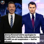 Jimmy Kimmel was told to apologize to Charlie Kirk’s family and make a donation to lift ABC’s on-air suspension —…