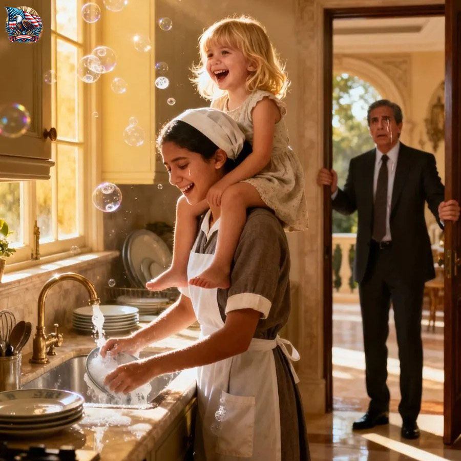 His daughter Valentina was perched on the maid’s shoulders, both of them singing a nursery rhyme as they washed the dishes together. The little girl laughed in a way he hadn’t seen in months.