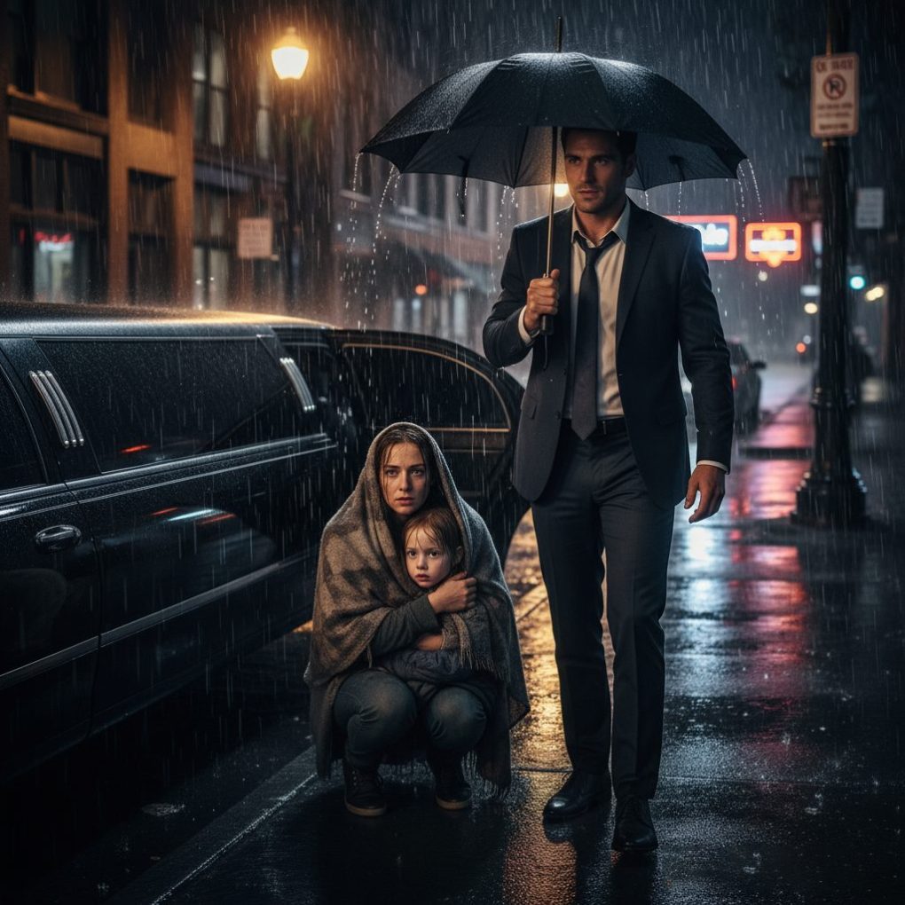 The rain was relentless that night, beating against Ethan Carter’s black limousine as it sped toward the airport. His assistant had canceled three meetings, his jet was waiting—and yet, for the first time, Ethan felt an odd emptiness in the backseat. Then, through the curtain of rain, he saw them: a woman huddled under a streetlight, holding a shivering little girl wrapped in a thin blanket.