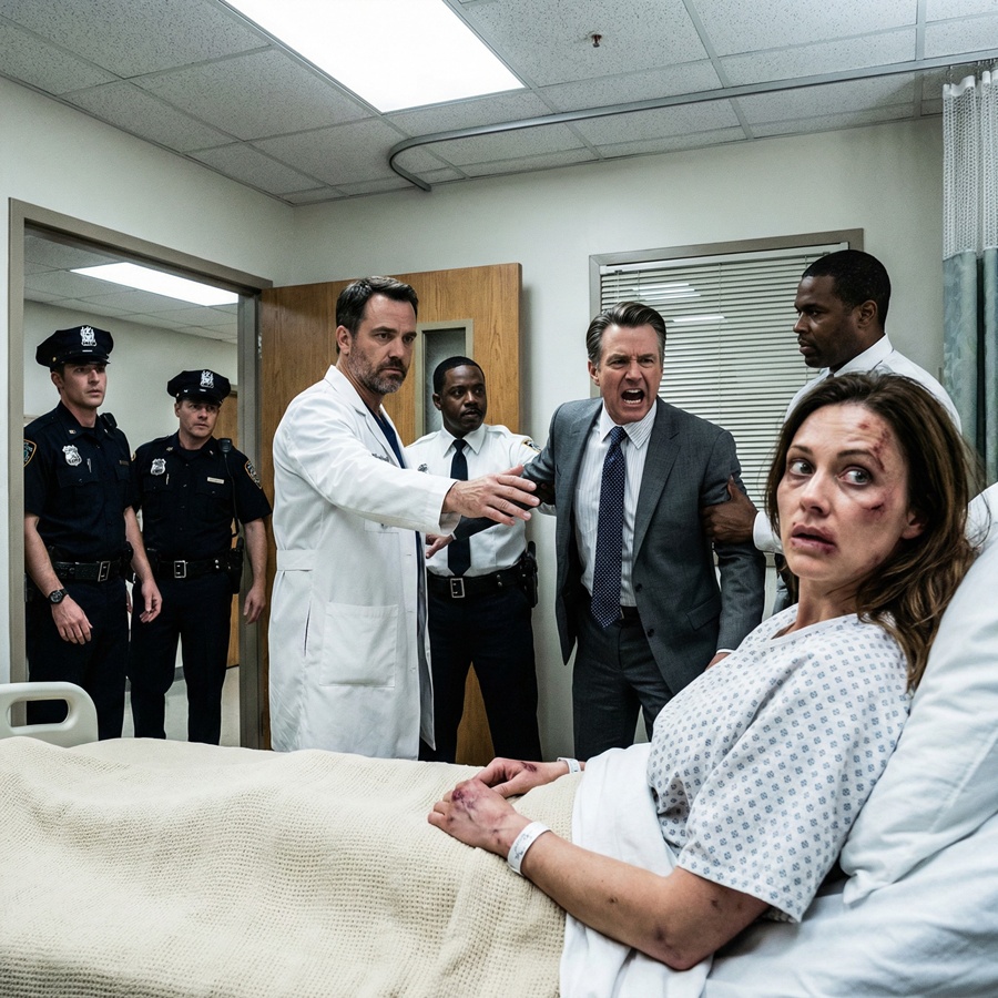 The room changed instantly. Security arrived within seconds, positioning themselves between Daniel and the bed. One officer asked him to step back. Daniel’s voice rose, sharp and offended.