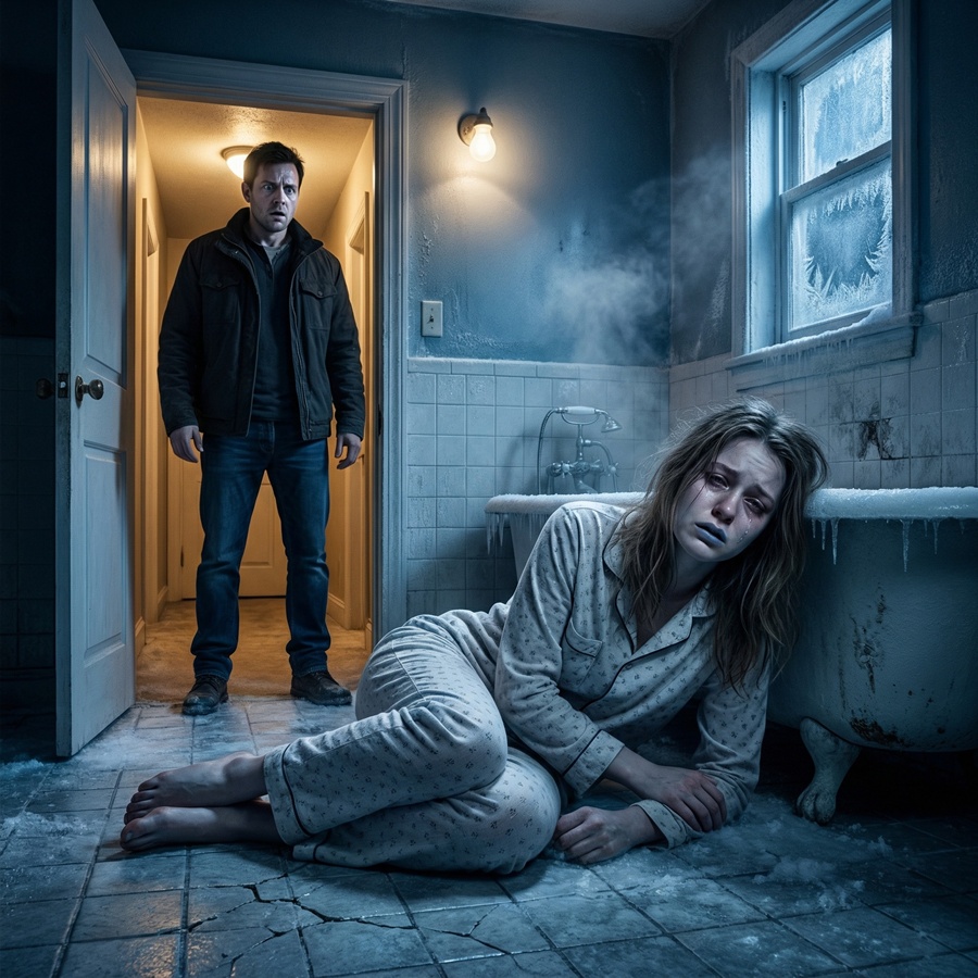 Hours passed. My phone battery died. My lips turned blue. I sat on the floor, pressing my back against the tub, trying to stay conscious. Every breath burned. My thoughts became slow, heavy.