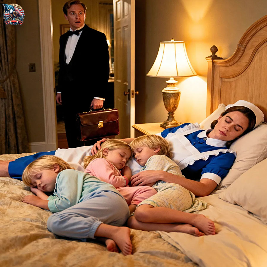 In the middle of the bed lay Hannah Lewis, the housekeeper. Curled against her—sleeping deeply for the first time in six months—were his three sons.
