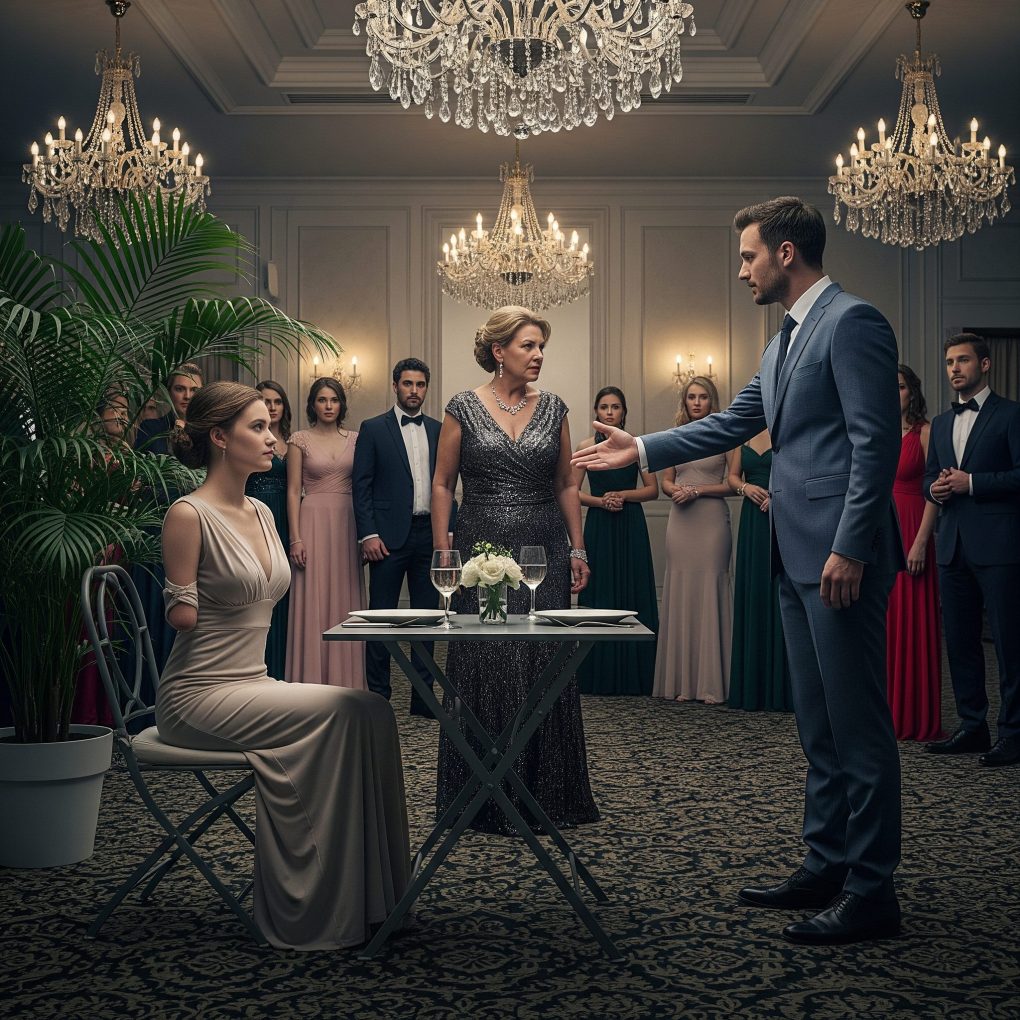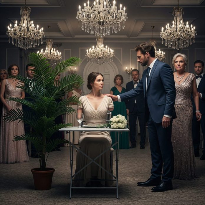 She stood frozen at the entrance of the reception hall, a folded card trembling in her single hand. The music of a jazz quartet blended with laughter and clinking champagne glasses, but all she saw was the waiter pointing toward a lonely table tucked behind a dying palm tree. A folding chair. A paper tablecloth. A space set for one.