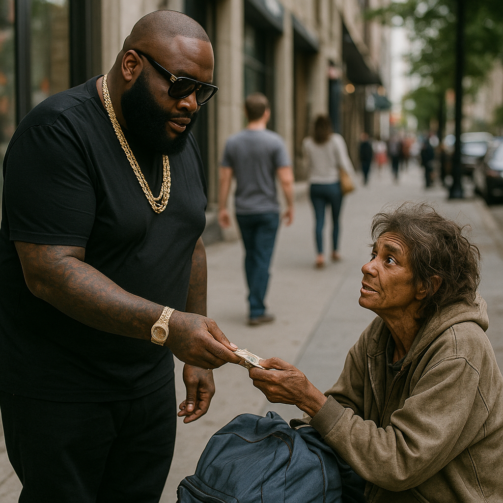 In an inspiring moment that captivated onlookers, hip-hop mogul Rick Ross could have easily walked past a homeless woman who simply asked him for a dollar. Instead, he chose to take action that stunned everyone around him, igniting a chain reaction of goodwill that transformed her life and sparked a national conversation about kindness and compassion.
