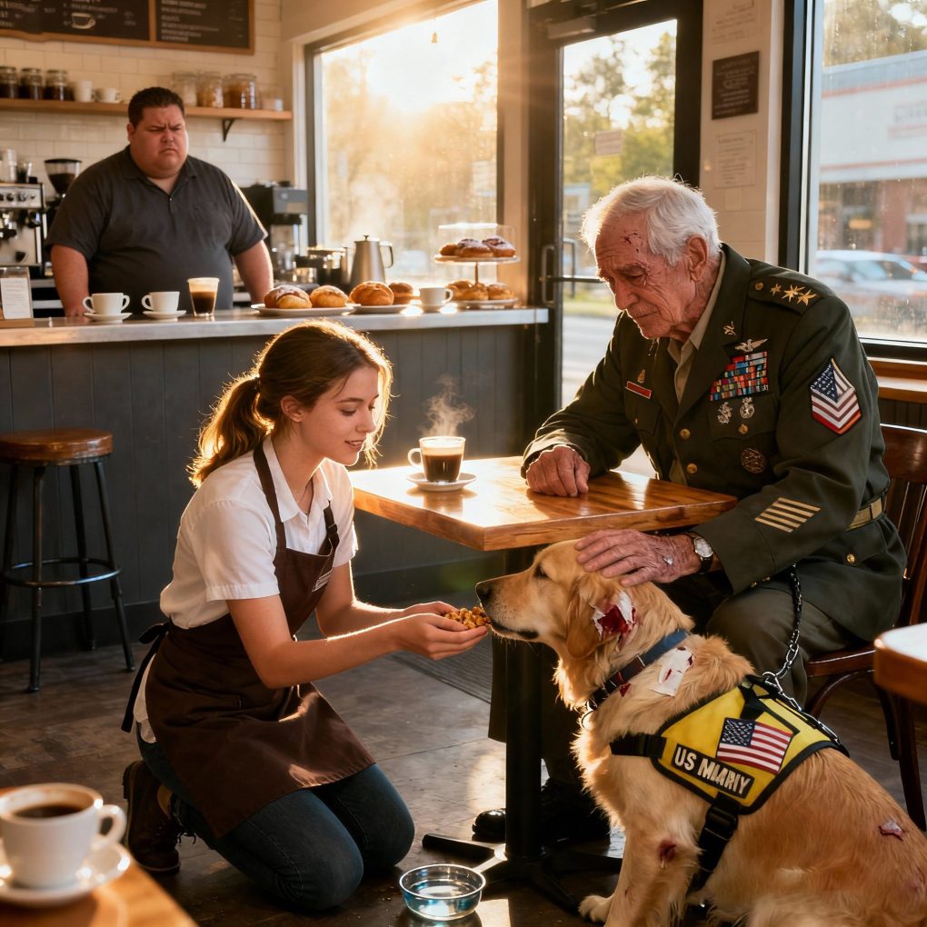When a kind-hearted waitress helped a struggling veteran and his sick service dog, she never imagined it would cost her job. But what happened next—just minutes later—left the entire café speechless. Stay with this story until the end; you won’t believe how the U.S. Marines changed everything that day.