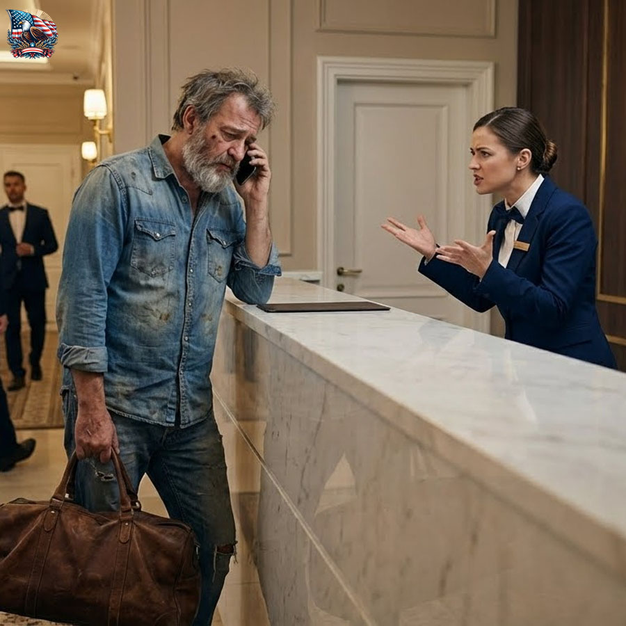 The receptionist, a young woman impeccably dressed with flawless makeup, scanned him from head to toe, her eyebrows tightening. In her mind, this hotel was reserved for wealthy travelers and business elites — not someone dressed like a farmhand.