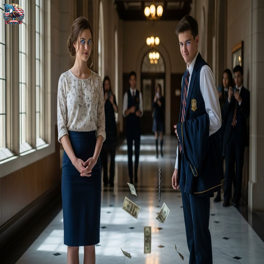 I turned around slowly, deliberately. Jordan stood there, his winning, politician-son smile plastered across his handsome face. He was six-foot-two, an athletic god among mortals, his frame perfectly showcased in a varsity letterman jacket that probably cost more than my first car. Behind him, his “crew”—the elite praetorian guard of Westfield Preparatory Academy—erupted in laughter.