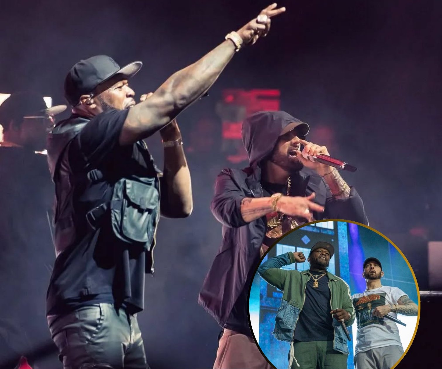 Detroit witnessed a moment that will go down as one of the most electrifying displays of loyalty in hip-hop history. During the Final Lap Tour stop at Comerica Park, 50 Cent brought his show to a sudden halt when a platform beneath the stage began to rise — revealing none other than Eminem, the mentor, friend, and man who changed the trajectory of his life.