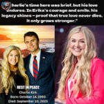 Charlie and Erika Kirk — two hearts that found each other and built a love story that touched everyone around them. Though Charlie’s earthly journey ended far too soon, the bond he shared with Erika will never fade. In her smile, his memory lives. In her strength, his legacy endures. Together, their love stands as a reminder that even in loss, true devotion is eternal.
