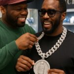 50 Cent gifts Diddy a buss down BABY OIL Cuban link chain at Icebox to welcome him home Biggest troll move of 2025 — the streets can’t stop talking!